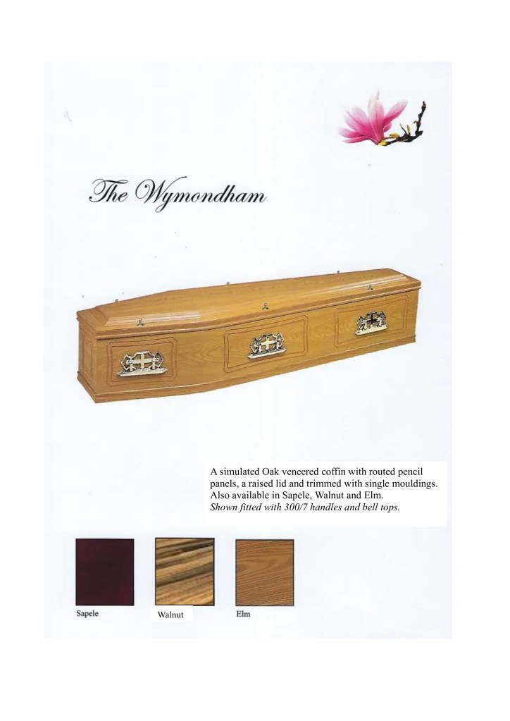 There is a great variety of coffins to choose from today. From solid wood to wood veneered, cardboard, woven bamboo lattice or willow, sheep’s wool to one’s hand painted with scenes to reflect a life or hobby of a loved one, we can even provide a coffin made from pineapple leaves or banana leaves that look like sea grass when woven. Be it a traditional or contemporary style preferred, we can show you brochures or give you detailed descriptions of all types of coffins. Please see our traditional coffin selection below.